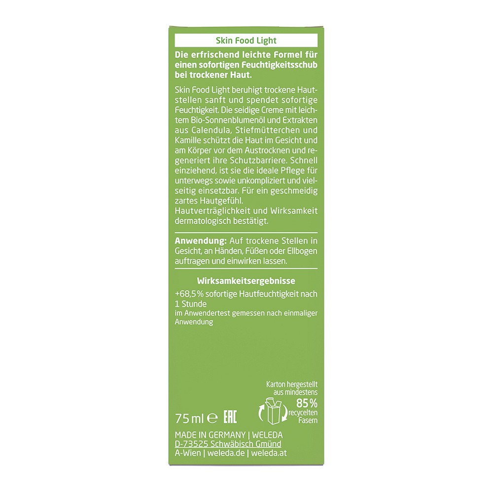 Die beliebte Hautcreme Skin Food gibt es auch in einer Light Version. Mit der Erweiterung der Pflegelinie durch Skin Food Light kommen alle auf ihre Kosten, die unsere beliebte Hautcreme Skin Food lieben, sich aber nach einer etwas leichteren Creme gesehnt haben, die schnell einzieht.Skin Food Light kommt genau diesem Bedürfnis entgegen und stillt sofort den Durst hungriger Haut umgehend. Die Creme hinterlässt ein angenehmes Hautgefühl und schenkt ihr eine intensive Feuchtigkeitspflege.