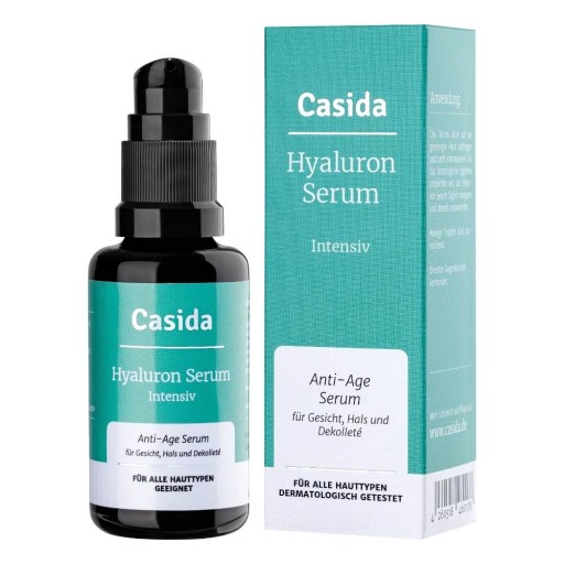 Das hochkonzentrierte Hyaluron Serum Intensiv von Casida erhöht den Feuchtigkeitsgehalt der Haut spürbar und macht sie geschmeidiger und elastischer. Die Kombination aus langkettiger und kurzkettiger Hyaluronsäure (bimolekulare Hyaluronsäure) versorgt die Haut in mehreren Tiefenarealen mit wertvoller Feuchtigkeit.