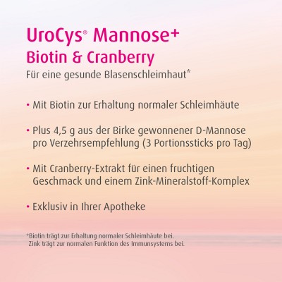 * Biotin trägt zur Erhaltung normaler Schleimhäute bei und somit zur Gesundheit der Blase. Zink trägt zur normalen Funktion des Immunsystems bei.