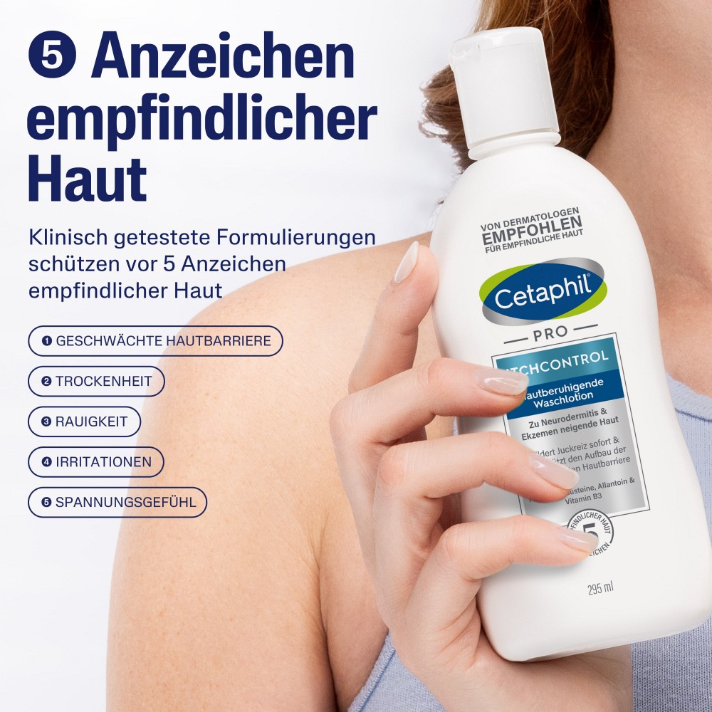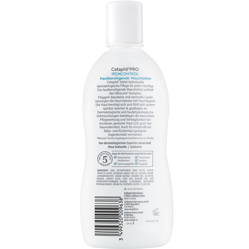 Die Folge: Trockene und juckende Haut. Cetaphil PRO ItchControl Hautberuhigende Waschlotion wirkt dem entgegen und versorgt die Haut bereits beim Waschen intensiv mit Feuchtigkeit. Die spezielle seifenfreie Formulierung schont die Hautbarriere und reinigt sanft schäumend. Die Haut beruhigt sich und fühlt sich spürbar weicher und gepflegter an. Auch für empfindliche Baby- und Kinderhaut geeignet.