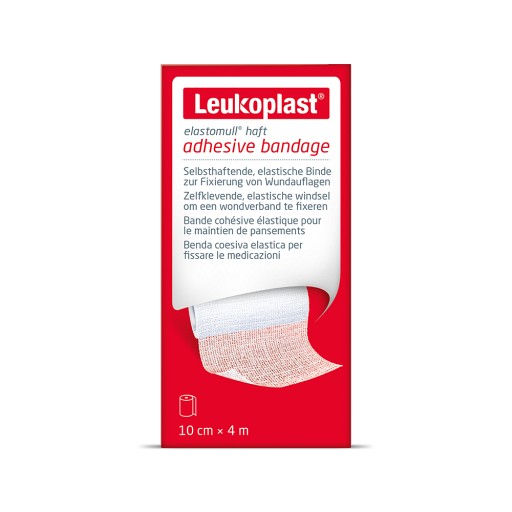 LEUKOPLAST® ELASTOMULL® HAFT - Selbsthaftende, elastische FixierbindeLeukoplast® Elastomull® haft ist eine elastische Kohäsivbinde, die mit einem latexfreien synthetischen Polymer beschichtet ist. Die einzelnen Wickellagen haften dadurch besonders sicher aufeinander –. dies ergibt einen ausgezeichneten, faltenfreien Sitz bei schneller und materialsparender Applikation.