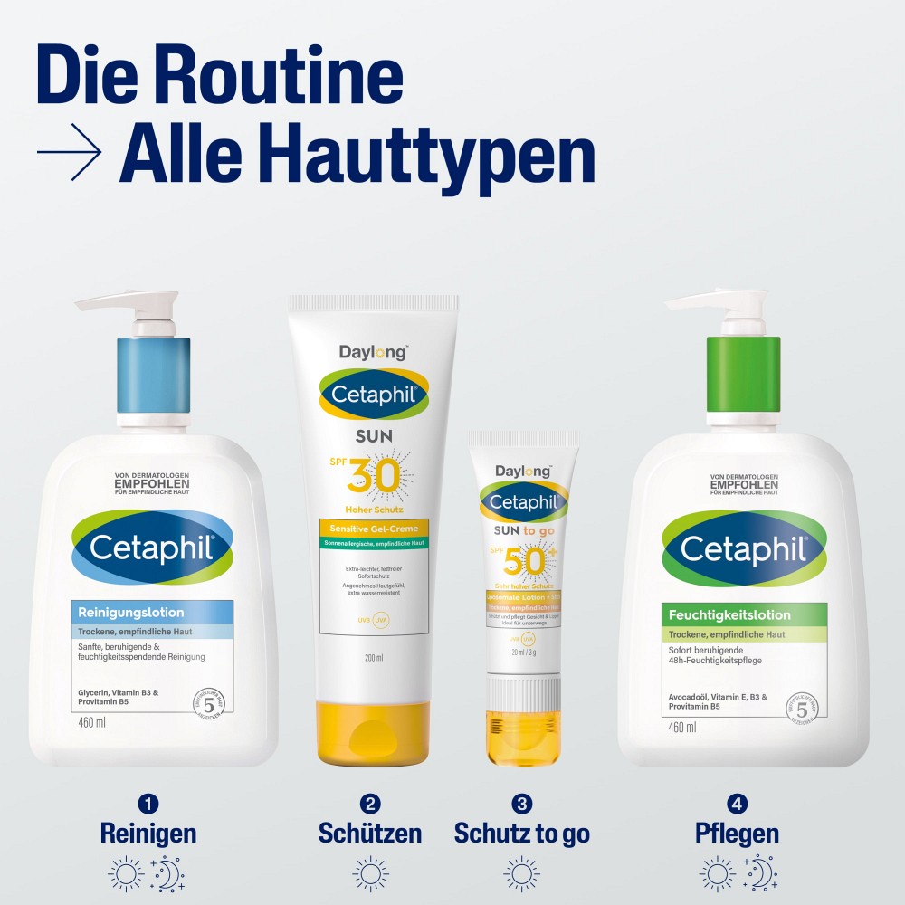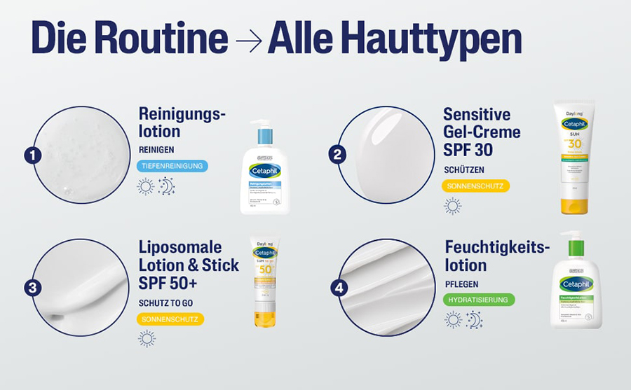 Tipp: Speziell für sonnenempfindliche Haut im Gesicht bieten sich unsere Cetaphil Sun Daylong Sensitive Gel-Fluids an – erhältlich mit Lichtschutzfaktor 30 und 50+.