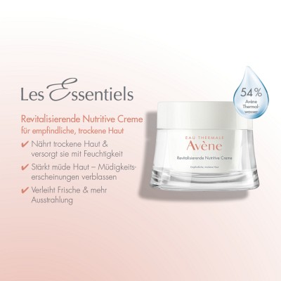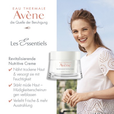 Die Avène Les Essentiels Revitalisierende Nutritive Creme ist eine Gesichtspflege, die empfindliche trockene, devitalisierte und müde Haut nährt und sie mit Feuchtigkeit versorgt.