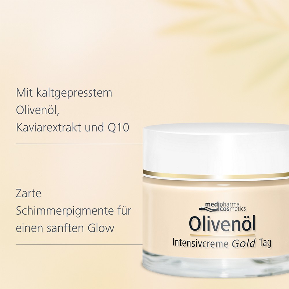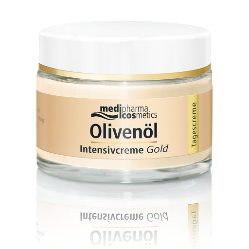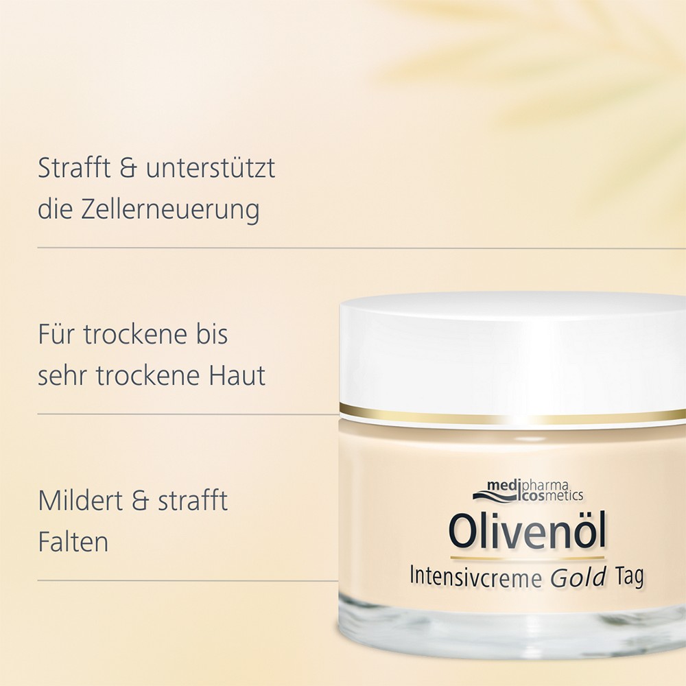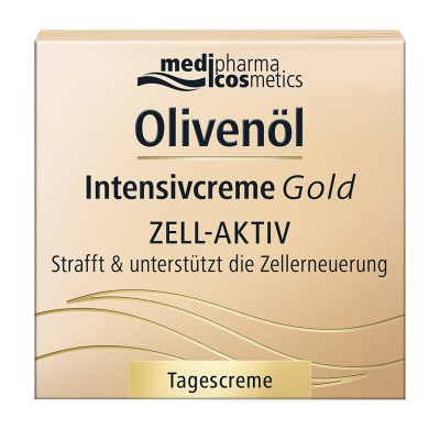 Die Olivenöl Intensivcreme Gold mit wertvollen Lipiden und Vitamin A unterstützt die Hautregeneration und versorgt die Haut zusätzlich mit Feuchtigkeit.