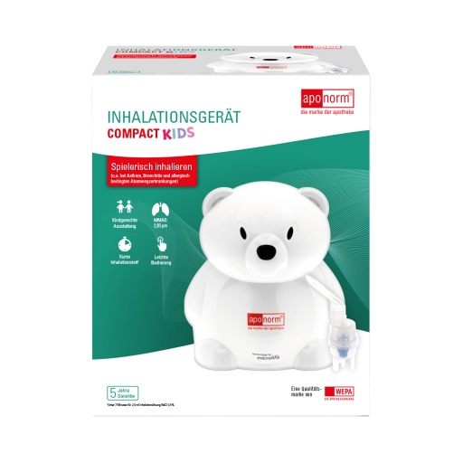 Der aponorm Inhalator Compact KIDS mit dem freundlichen Eisbären-Look hilft spielerisch bei der täglichen Inhalation bei Kindern, denn er ist speziell an die Bedürfnisse von kleinen Patienten angepasst.