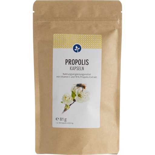Vegane Kapseln mit 19% Propolis-Extrakt.Propolis ist ein natürliches Produkt, das Hauptsächlich aus Naturharz, Pollenbalsam, Wachs, ätherischen Ölen und Blütenpollen besteht. Die Honigbienen sammeln diese natürlichen Bestandteile und erzeugen daraus das kostbare Propolis. Die Bienen benötigen diese harzige Masse zum Schutz vor Pilzen, Bakterien und anderen Mikroorganismen in ihrem Bienenstock. Unsere Propolis-Kapseln enthalten zusätzlich Vitamin C.