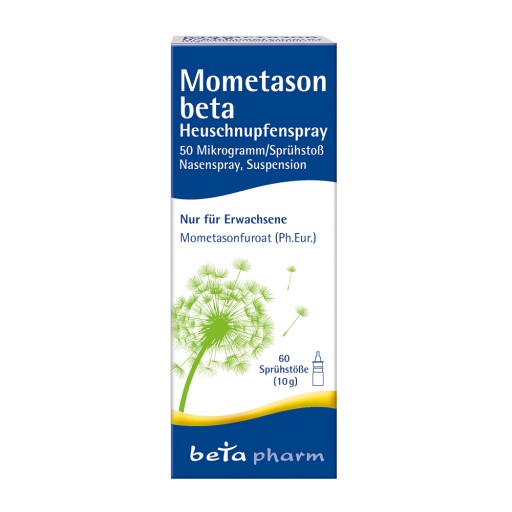 Anw.: Mometason beta Heuschnupfenspray wird bei Erw. zur Behandlung d. Beschwerden eines Heuschnupfens (saisonale allergische Rhinitis) angewendet, vorausgesetzt, die Erstdiagnose von Heuschnupfen wurde von einem Arzt gestellt.