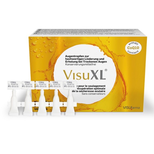 VisuXL®, die innovativen Augentropfen zur hochwertigen und lang anhaltenden Linderung für Symptome des Trockenen Auges wurden in Deutschland im Mai 2017 eingeführt.VisuXL® sind die Tropfen mit der einzigartigen Kombination von Coenzym Q10, quervernetzter Hyaluronsäure und Vitamin E TGPS, die die Anwendungsvorteile mit dem hochwirksamen und lang anhaltenden Effekt in sich vereinen.