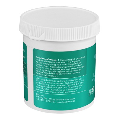 Immer mehr Menschen entscheiden sich aus gesundheitlichen &. ethischen Gründen für eine Ernährung ohne Fisch und Fleisch oder ganz ohne tierische Produkte, wollen aber dennoch eine optimale Versorgung mit DHA und EPA sicherstellen.DHA und EPA in unserem Produkt stammen aus der Mikroalge „Schizochytrium sp“ und haben mit 250 mg Docosahexaensäure (DHA) und 125 mg Eicosapentaensäure (EPA) je Kapsel einen hohen Gehalt an Omega-3-Fettsäuren. Omega-3-Fettsäuren sind essentiell, das bedeutet sie sind lebensnotwendig, können jedoch nicht selbst vom Körper produziert werden. Eine ausreichende Zufuhr über die Nahrung ist daher notwendig.