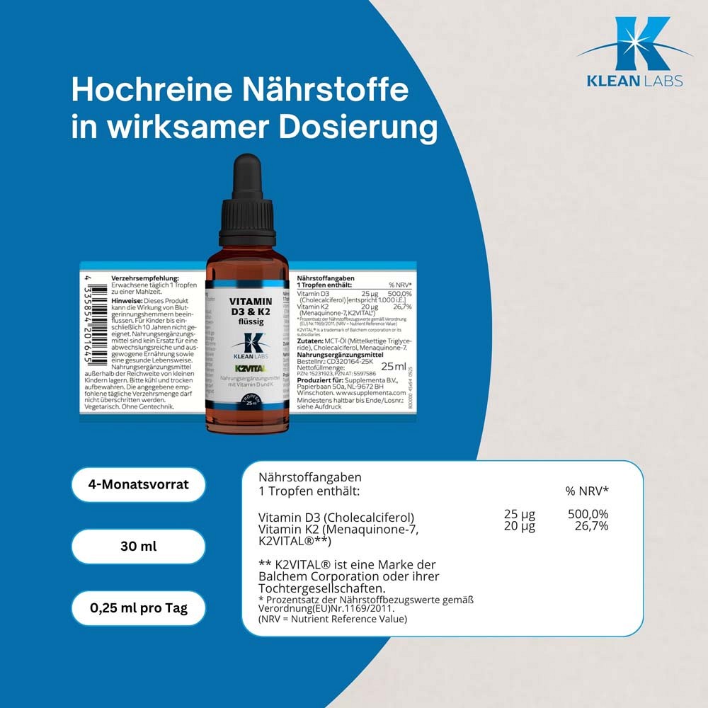 VITAMIN D3 & K2 Liquid KLEAN LABS 25 ml