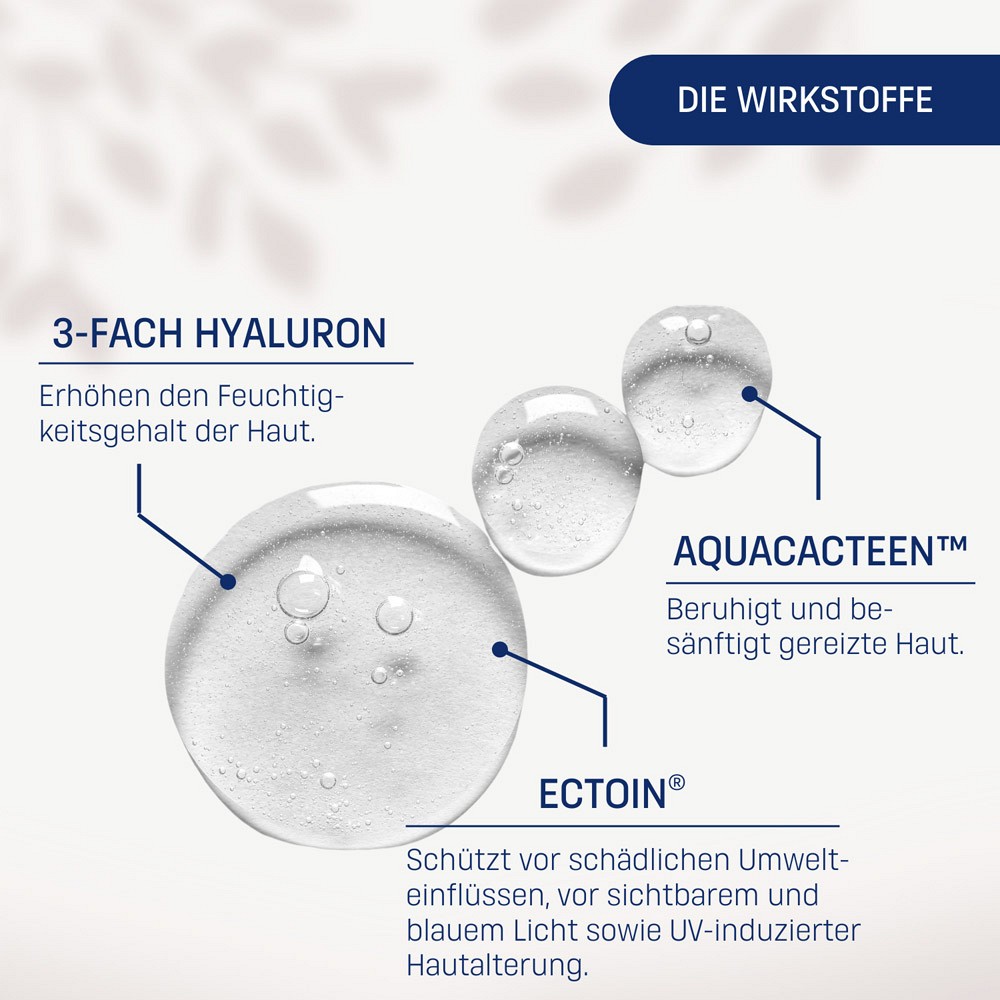 - Das natürliche Stressschutzmolekül Ectoin® verhindert Haut- und Zellschäden, fördert die Regeneration. Schützt vor UV-induzierter Alterung und dem Abbau von Kollagen und Elastin