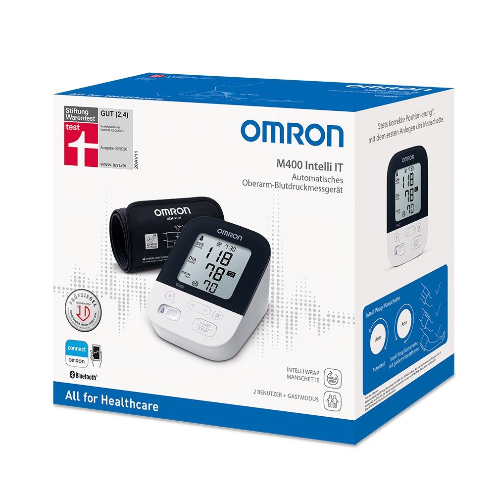 Das klinisch validierte Oberarm-Blutdruckmessgerät M400 Intelli IT mit einzigartiger Intelli Wrap Manschette liefert genaue Messergebnisse in jeder Position um den Oberarm1. Unregelmäßige Herzschläge werden während der regulären Messung erkannt.Es ist kompatibel mit der einzigartigen OMRON connect App, mit der Gesundheitsdaten einfach nachverfolgt und geteilt werden können.