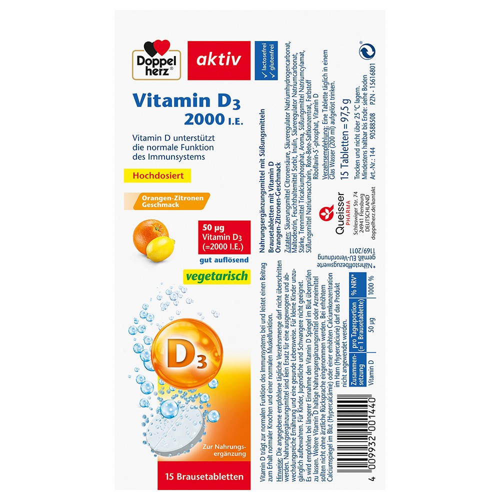 DOPPELHERZ Vitamin D3 2000 I.E. Brausetabletten 15 St