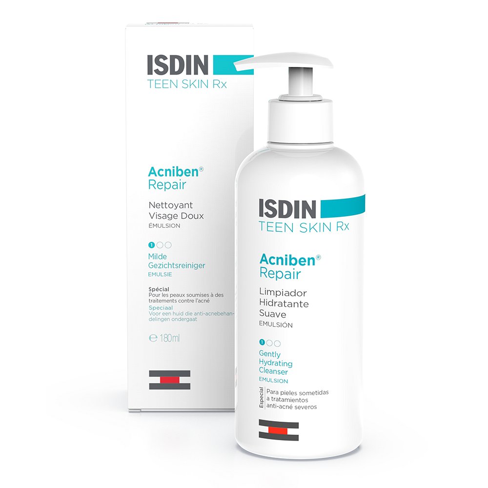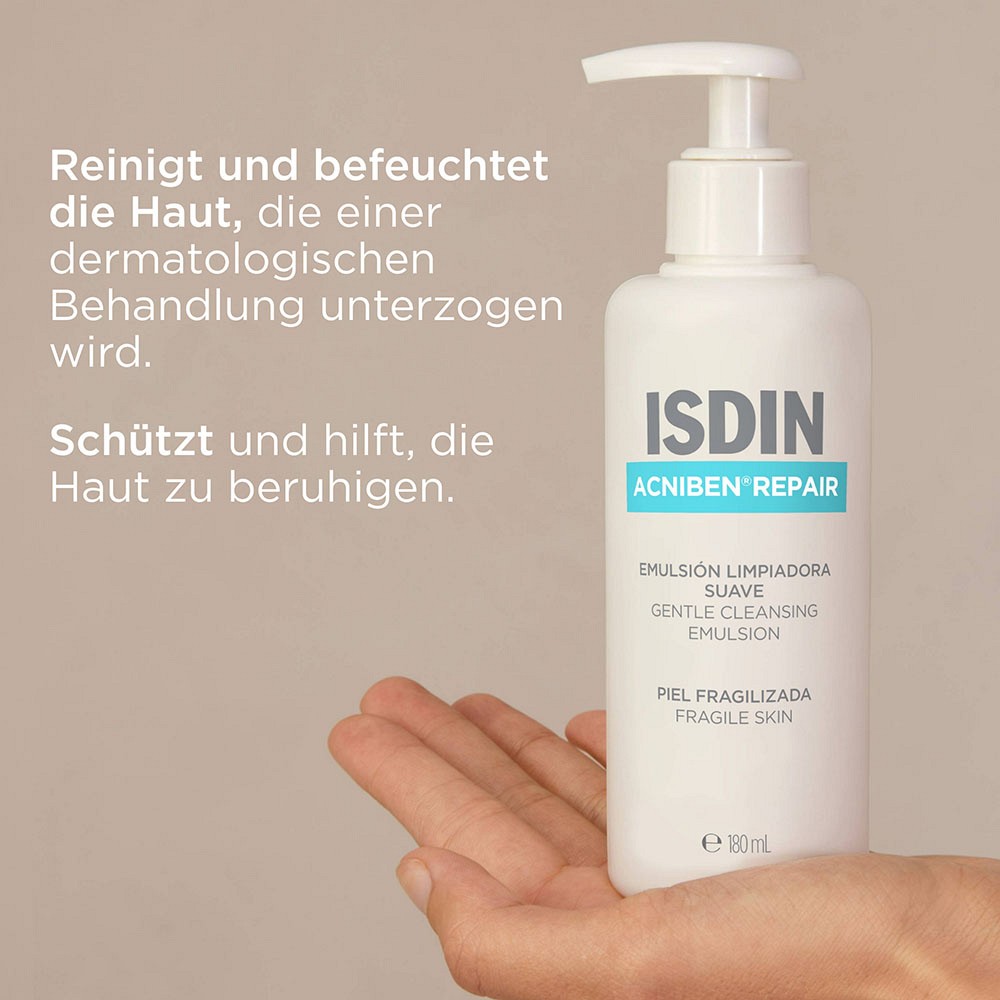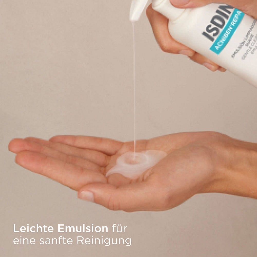 Haut, die einer dermatologischen Akne Behandlung (z.B mit Isotretionin) unterzogen wird, benötigt eine besondere tägliche Pflege, da sie häufig zu Irritation, Hautrötung und Schuppung neigt. Acniben Repair Reinigungsemulsion reinigt und macht die Haut geschmeidig, ohne sie auszutrocknen.Frische und Schutz empfindlicher Haut