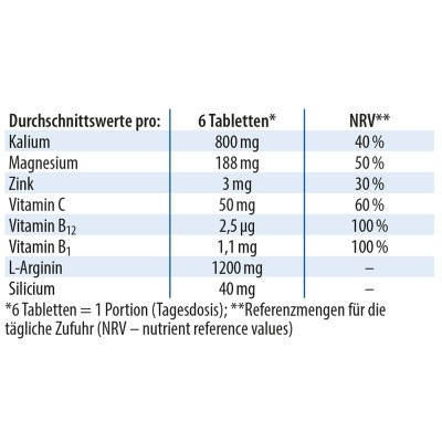 Pro Portion Dr. Jacob’s Blutdruck-Tabletten sind 1600 mg L-Arginin enthalten.
