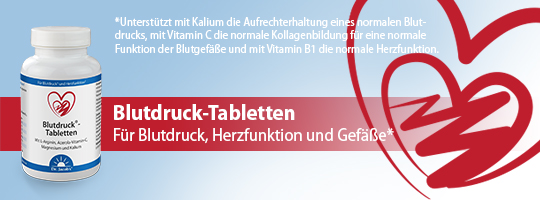 *Mit den in Dr. Jacob’s Blutdruck-Tabletten enthaltenen Nährstoffen können Sie einen wissenschaftlich gesicherten Beitrag zu Ihrer Gesundheit und den folgenden normalen Körperfunktionen leisten: