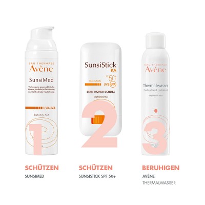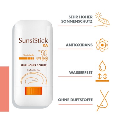 Sonnenpflege mit sehr hohem UV-Schutz geeignet für zu aktinischer Keratose neigender Haut.Sehr hoher Sonnenschutz mit antoxidativem Schutzkomplex für empfindliche Hautpartien im Gesicht und am Körper, die besonders der Sonne ausgesetzt sind und zu aktinischer Keratose neigen.