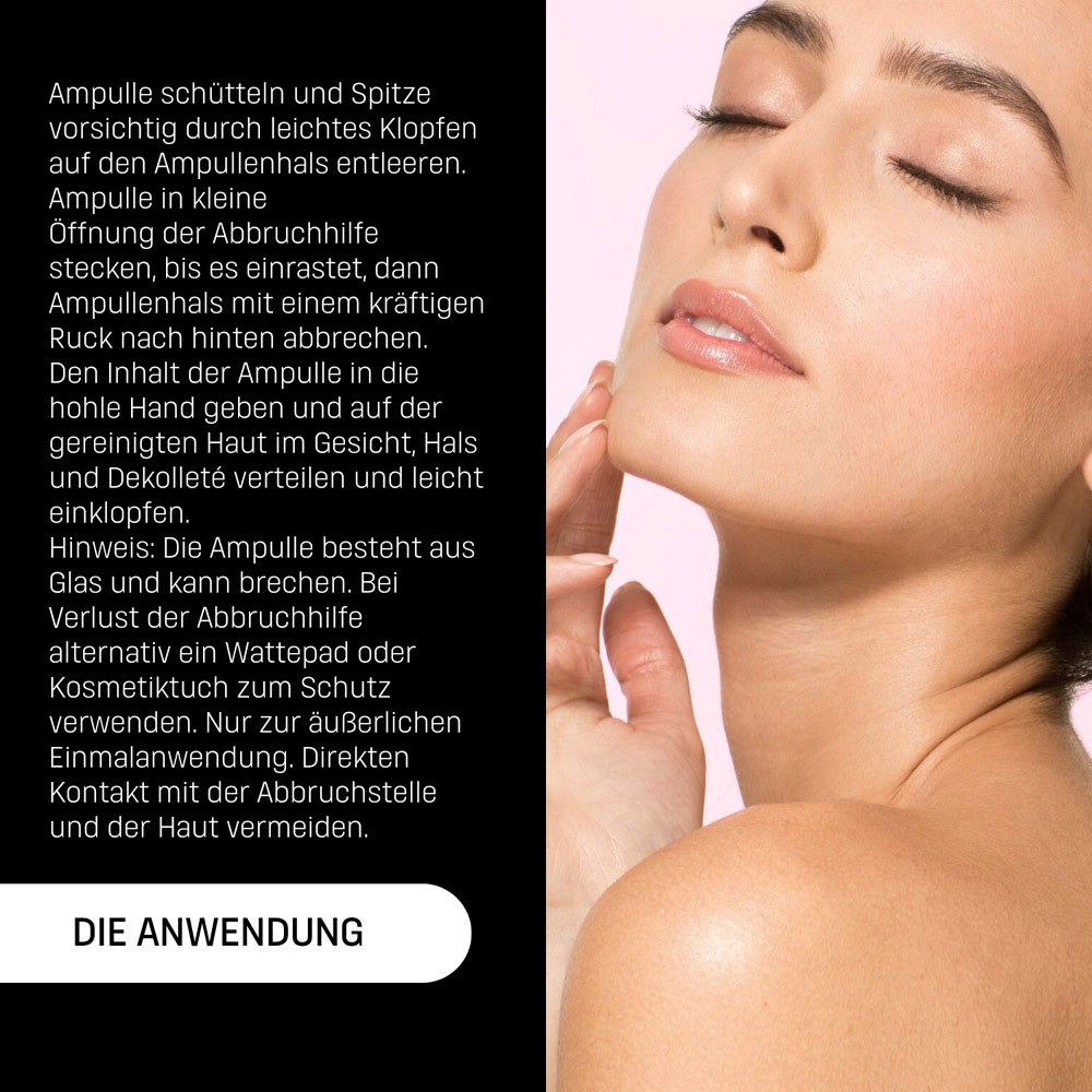 - Wirkt sofort gegen feine Falten, die Haut erscheint unmittelbar gestrafft und strahlend