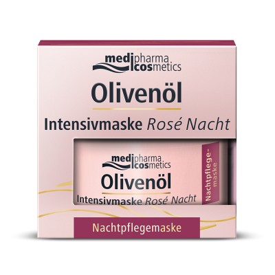 Die regenerierende und straffende Olivenöl Intensivmaske Rosé Nacht mit hochwertigen Wirkstoffen unterstützt den Regenerationsprozess der Haut während sie nachts zur Ruhe kommt.