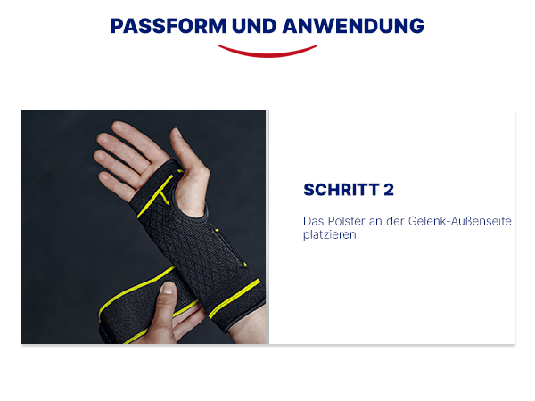 Schritt 2: Den Daumen durch die Daumenöffnung führen, so dass sich das Polster an der Gelenk-Außenseite befindet.