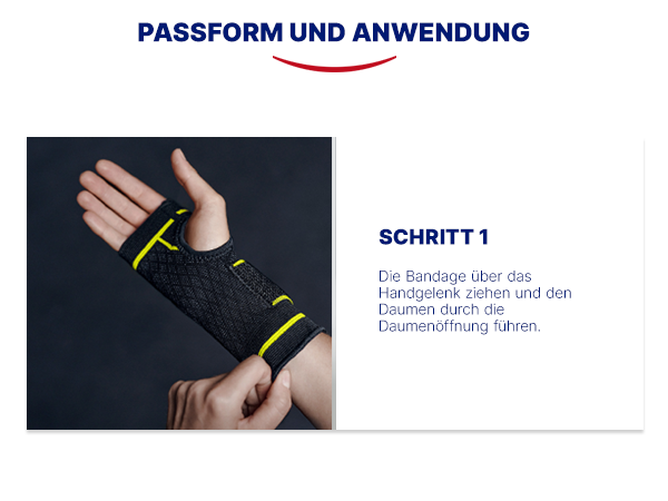 Schritt 1: Die Bandage über das Handgelenk ziehen.