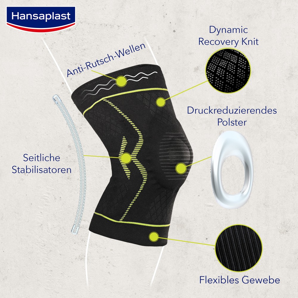 Die Hansaplast Performance Knie-Bandage bietet Stabilität, Schutz und Kompression für schmerzende, schwache, oder verletzte Knie. Sie bietet einen moderaten Stützgrad während der Bewegung und anderen Aktivitäten.