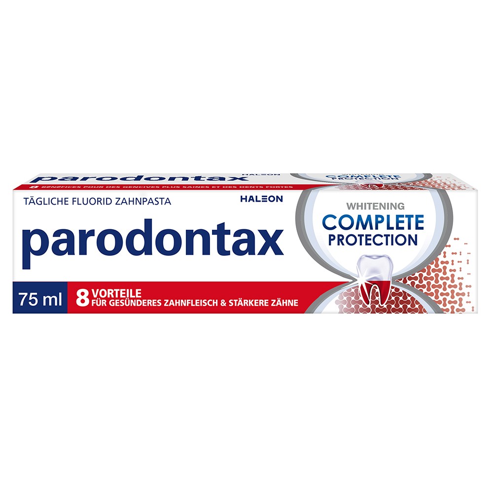 • WAS IST PARODONTAX: Die parodontax Complete Protection Whitening Zahncreme verfügt über 8 speziell entwickelte Vorteile, die dabei helfen, Ihr Zahnfleisch gesund und Ihre Zähne stark zu halten