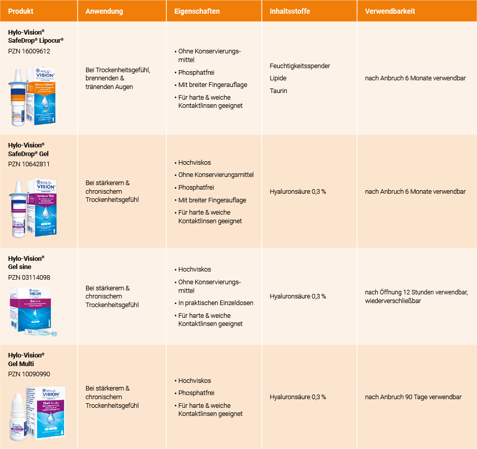 Diagnostische Eingriffe und Operationen am Auge sowie das Tragen von Kontaktlinsen stellen eine mechanische Beanspruchung dar, die den Tränenfilm stören und ein unangenehmes Trockengefühl hervorrufen kann. HYLO-VISION SafeDrop Lipocur lindert die Beschwerden, regeneriert und baut den Tränenfilm wieder auf. Die Augentropfen eignen sich gut zur postoperativen Anwendung sowie bei harten und weichen Kontaktlinsen.