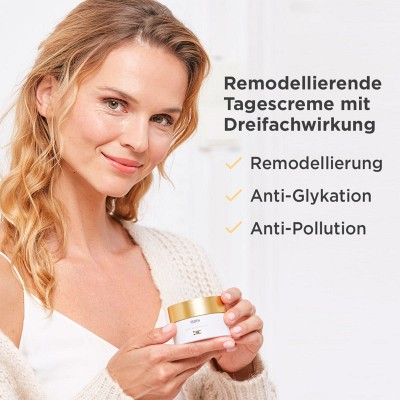 Effektive Behandlung mit 3-fach Effekt: Anti-Pollution, Remodellierung und Anti-Glykation. Die exklsuive Formulierung der Gesichtscreme mit Exo-P bildet ein Schutzschild, um diese so vor Umweltverschmutzung zu schützen. Das zusätzlich enthaltene Carnosin verzögert die Bildung von glykierten Reaktionsprodukten (A.G.E.).