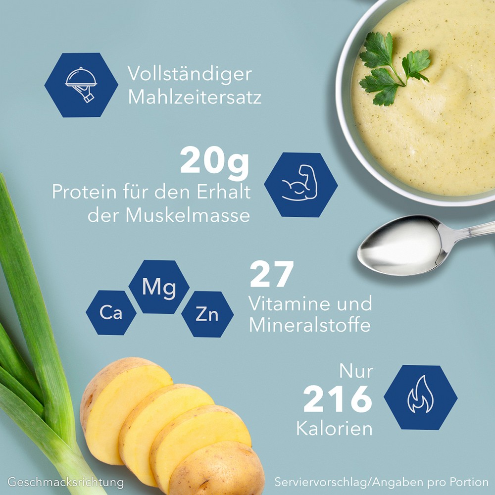 Als vollwertiger Mahlzeitersatz für eine gewichtskontrollierende Ernährung erfüllt die Zusammensetzung hohe rechtliche Anforderungen und ist nicht mit handelsüblichen Proteinprodukten vergleichbar.