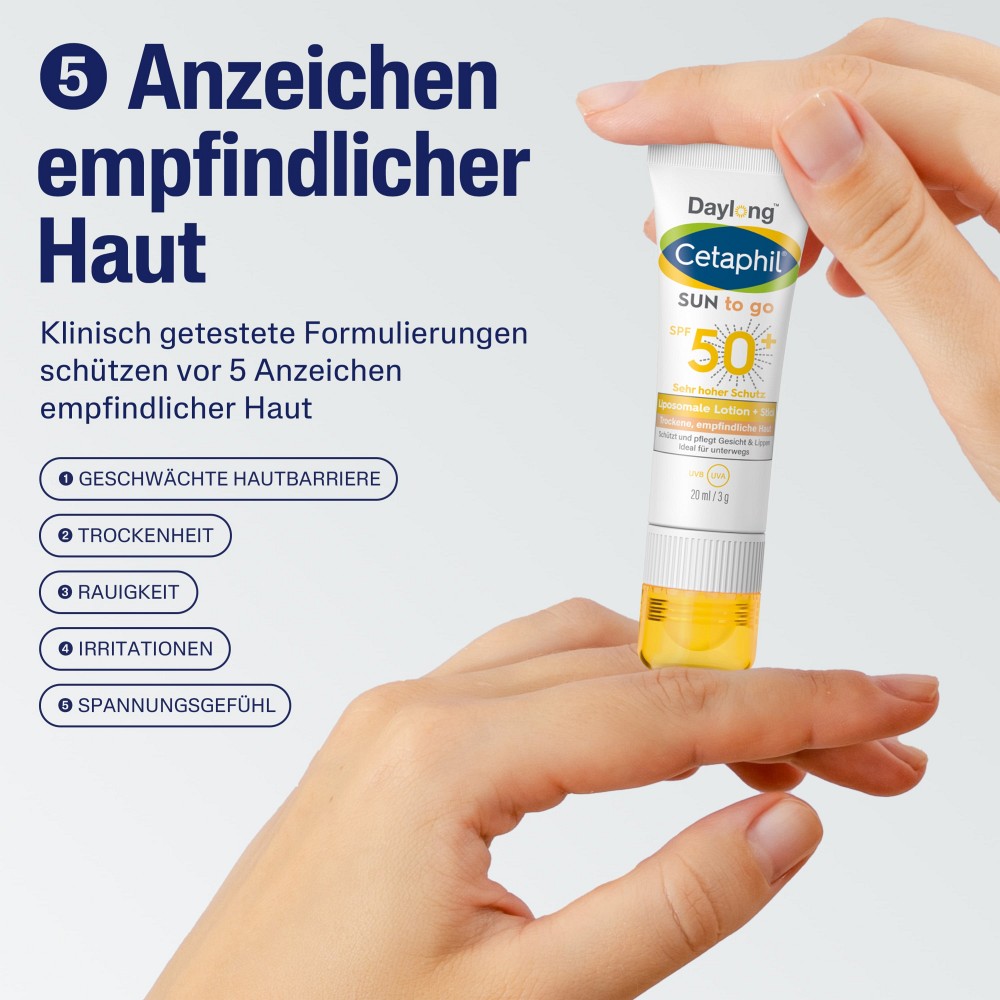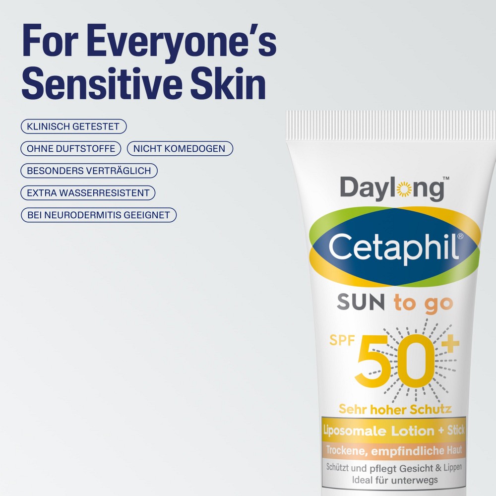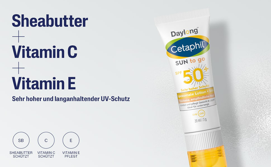 Cetaphil Sun Daylong SPF 50+ Sun to go bietet sich vor allem als täglicher Sonnenschutz-Begleiter für die (Hosen-)Tasche, sowie im Winterurlaub und auf Reisen an. Dank seines Formats ist er ideal für unterwegs. Der integrierte Stick ist insbesondere für die Lippen und exponierte Hautpartien im Gesicht geeignet.