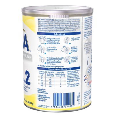 BEBA Frühgeborenennahrung Stufe 2 ist ein Lebensmittel für besondere medizinische Zwecke (bilanzierte Diät). Zum Diätmanagement bei Frühgeborenen von 1800 g bis ca. 4000