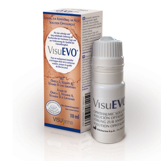 Durch die Kombination seiner Inhaltsstoffe ist VisuEVO® einzigartig. Bei VisuEVO® handelt es sich um Augentropfen mit der einzigartigen Kombination aus Vitamin A, Vitamin D, Omega-3-Fettsäuren und ultragefilterten Phospholipiden für das evaporative Trockene Auge.VisuEVO® bietet eine patientenfreundliche Therapie. Es muss nur dreimal am Tag getropft werden. Außerdem ist VisuEVO® konservierungsmittelfrei und für Kontaktlinsenträger geeignet.