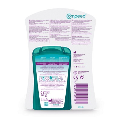 - Das COMPEED® Herpesbläschen-Patch Invisible sollte rund um die Uhr getragen werden, bis das Bläschen abgeheilt ist. Ein Patch löst sich nach ca. 12 Stunden von selbst ab und sollte dann durch ein neues ersetzt werden.