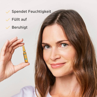 Serum in Ampullen mit einer fortschrittlichen Kombination aus zwei Hyaluronsäuremolekülen, mit mittlerem und niedrigem Molekulargewicht, die der Haut hilft, ihren Feuchtigkeitsgehalt wiederherzustellen - für eine strahlende Haut.
