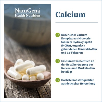 Calcium ist ein natürlicher Calcium-Komplex aus Microcristallinem Hydroxylapatit (MCHA), organisch gebundenen Mineralstoffen und Co-Faktoren.