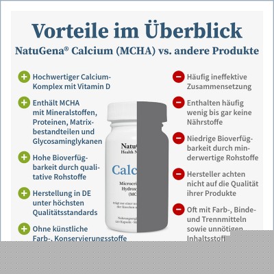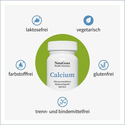 - Natürlicher Calcium-Komplex aus Microcristallinem Hydroxylapatit (MCHA), organisch gebundenen Mineralstoffen und Co-Faktoren