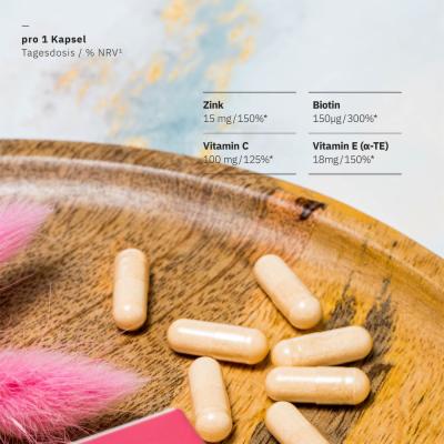 - hochdosierte Formel: mit Zink, Biotin, Vitamin C und E