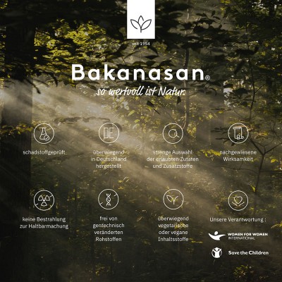 Bakanasan® vereint das Wissen um die Heilkräfte der Natur und ganzheitliche Produktkonzepte, die dich von innen heraus stärken und dir täglich dabei helfen gesund, glücklich und schön zu bleiben. Bakanasan®-Produkte werden nach höchsten Standards in Deutschland hergestellt und sorgfältig von unabhängigen Qualitätsinstituten geprüft. Und das bereits seit 1954.