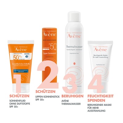 OCTYLDODECANOL. POLYETHYLENE. BUTYLENE GLYCOL COCOATE. HYDROGENATED MICROCRYSTALLINE WAX. BIS-ETHYLHEXYLOXYPHENOL METHOXYPHENYL TRIAZINE. DIETHYLAMINO HYDROXYBENZOYL HEXYL BENZOATE. DIETHYLHEXYL BUTAMIDO TRIAZONE. BUTYL METHOXYDIBENZOYLMETHANE. ETHYLHEXYL SALICYLATE. BEESWAX (CERA ALBA). HYDROGENATED CASTOR OIL. AVENE THERMAL SPRING WATER (AVENE AQUA). ALUMINUM HYDROXIDE. BUTYLENE GLYCOL. CAPRYLIC/CAPRIC TRIGLYCERIDE. DISODIUM STEAROYL GLUTAMATE. METHYL METHACRYLATE CROSSPOLYMER. OXOTHIAZOLIDINE. SACCHARIN. SODIUM BENZOATE. TITANIUM DIOXIDE (CI 77891). TOCOPHERYL GLUCOSIDE. WATER (AQUA).