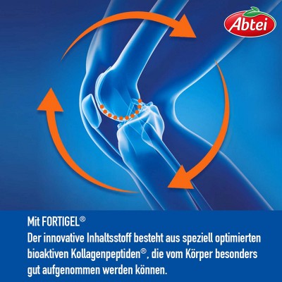 Kollagen ist das wichtigste Faserprotein in Knorpel und Knochen. Abtei Aktiv Kollagen 5000 enthält den innovativen Inhaltsstoff FORTIGEL®, mit speziell optimierten bioaktiven Kollagenpeptiden®, die vom Körper besonders gut aufgenommen werden können.