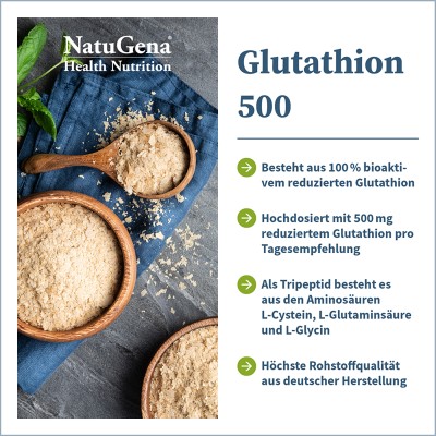 - Glutathion 500 besteht aus 100 % bioaktivem reduzierten Glutathion