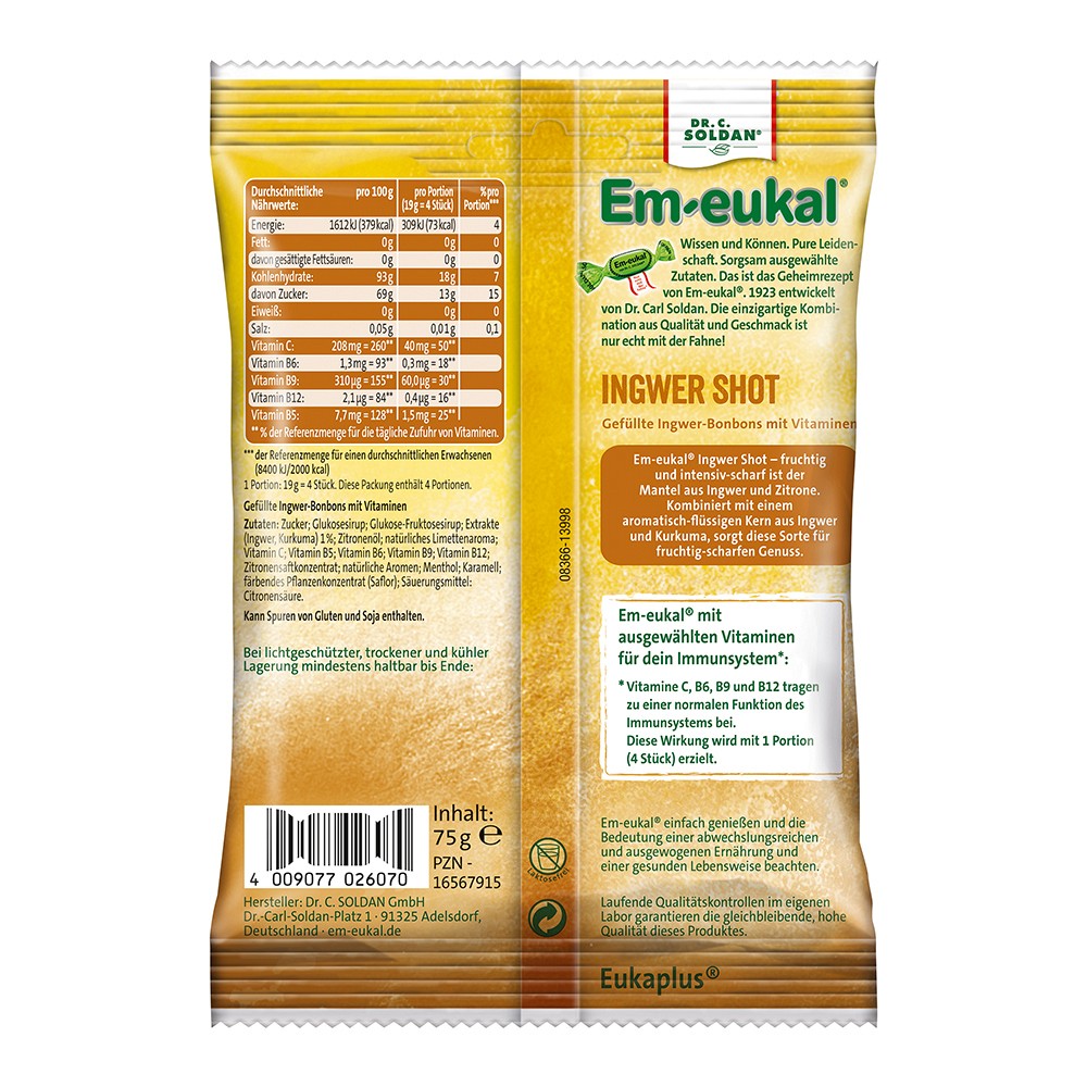 EM-EUKAL Bonbons Ingwer Shot gefüllt zuckerhaltig 75 g