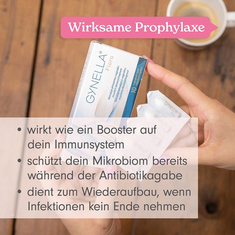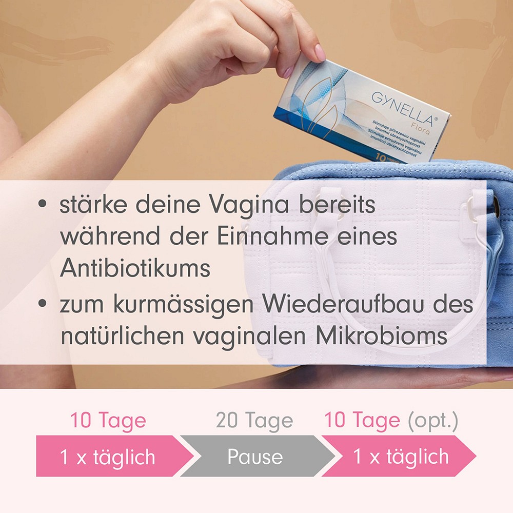GYNELLA® Flora ist ein Medizinprodukt auf der Basis nicht lebensfähiger tyndallisierter Lactobacillus-Stämme (Lactobacillus acidophilus, Lactobacillus reuteri, Lactobacillus casei) zur Unterstützung der natürlichen vaginalen Mikroflora, wenn die Abwehrkräfte durch äußere Faktoren beeinträchtigt sind (Einsatz von Antibiotika, häufige Verwendung von Tampons, Lebensstil, Freizeitaktivitäten, Verhütung, falsche Intimhygiene, Schwangerschaft, Geburt usw.).