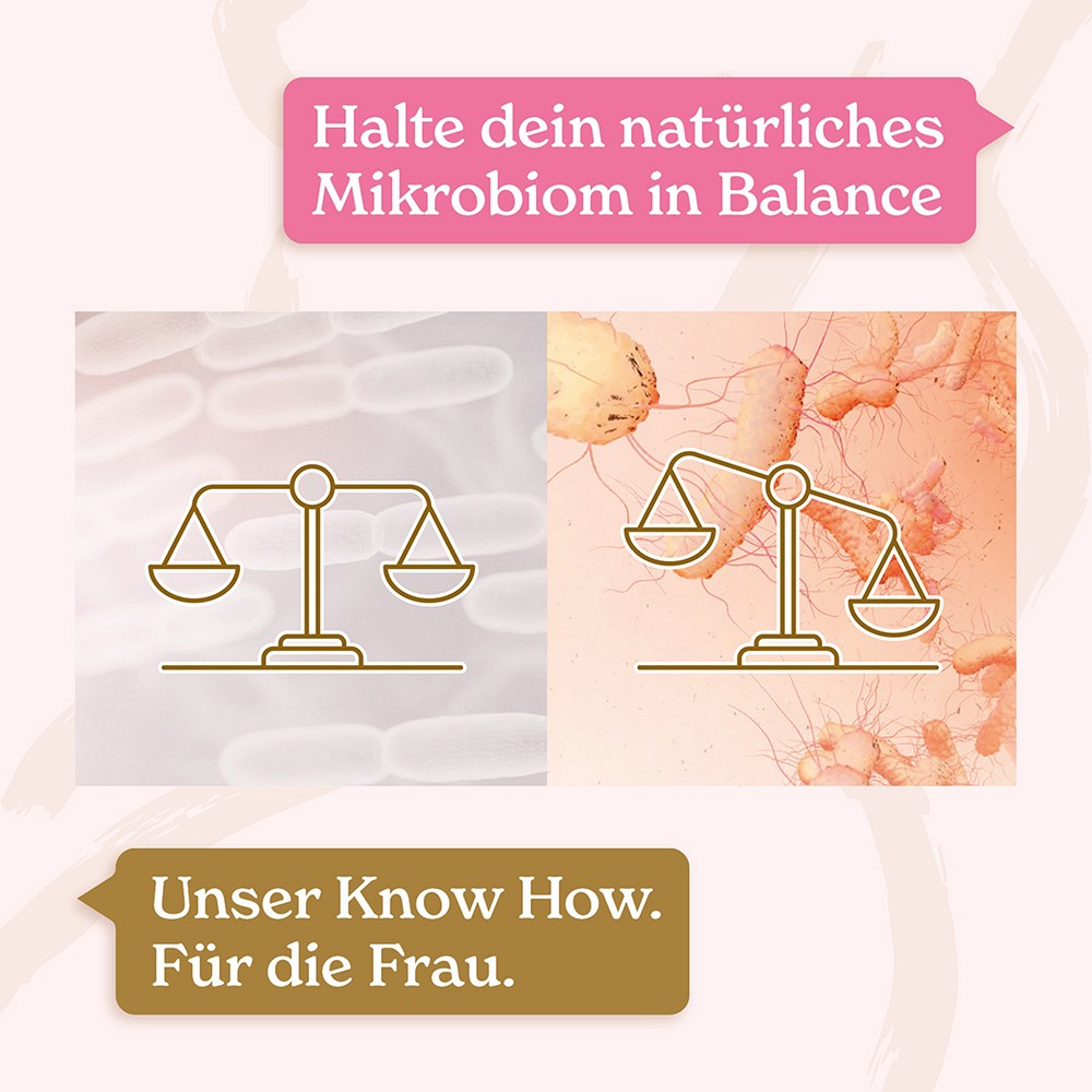 Die Kombination tyndallisierter Lactobacillus-Stämme (Lactobacillus acidophilus, Lactobacillus reuteri, Lactobacillus casei) stimuliert die natürliche Immunabwehr, beugt der Adhäsion von Krankheitserregern vor und erhält das Gleichgewicht der Vaginalflora, wenn diese durch Schwangerschaft oder durch Erkrankungen der Scheide (Ausfluss, Entzündung, Infektion) beschädigt oder zerstört wurde.