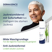 Das speziell für sensible Kopfhaut entwickelte Shampoo mit Panthenol wirkt beruhigend bei Kopfhautirritationen. Mit Glycerin und Urea pflegt es die Kopfhaut, der Feuchtigkeitsgehalt bleibt erhalten. Wirkt mit Anti-Juckreizformel aus Polidocanol und Menthol juckreizlindernd und kühlt die Kopfhaut. Das Shampoo mildert so Juckreiz und Schmerzempfinden bei sensibler Kopfhaut langfristig.Zur Beruhigung der Kopfhaut nach dem Haarewaschen empfehlen wir das DERMASENCE Polaneth Liquid, das auf die handtuchtrockene Kopfhaut aufgetragen werden kann.