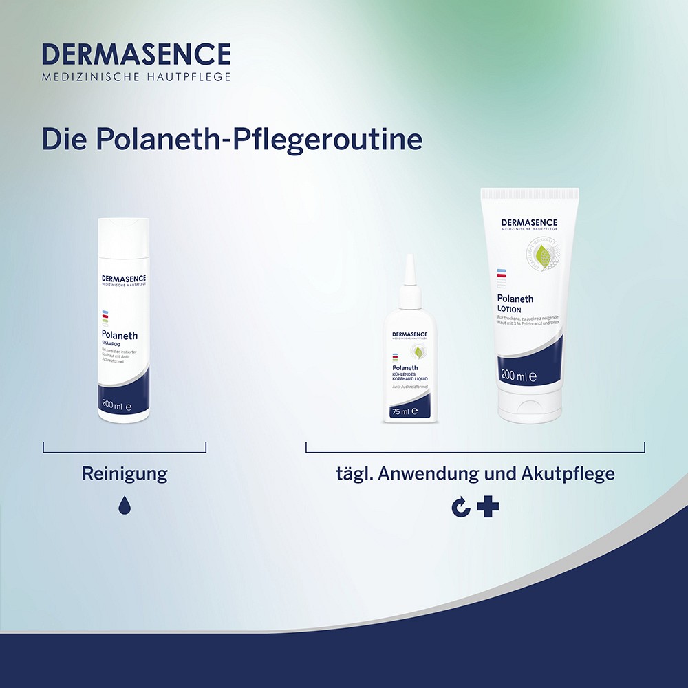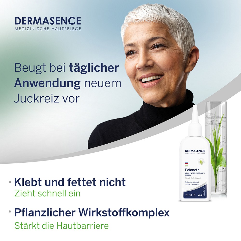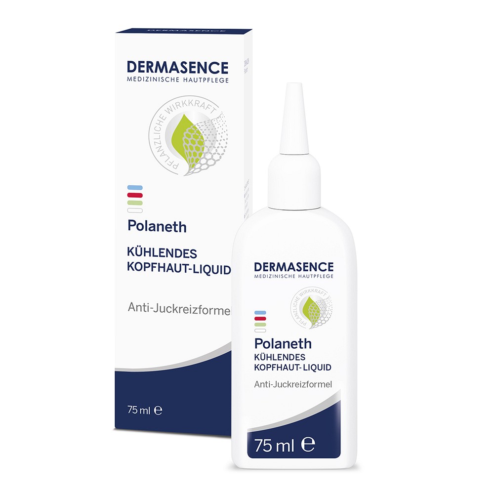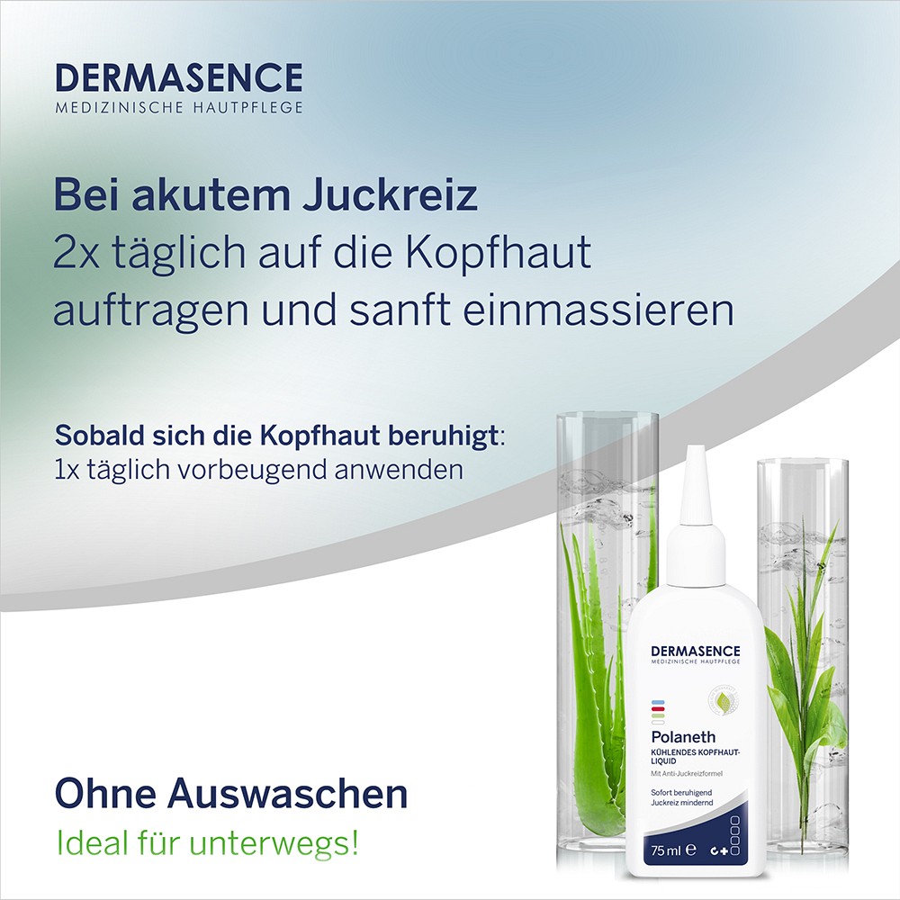 Zur milden Reinigung der zu Juckreiz neigenden Kopfhaut empfehlen wir das DERMASENCE Polaneth Shampoo.