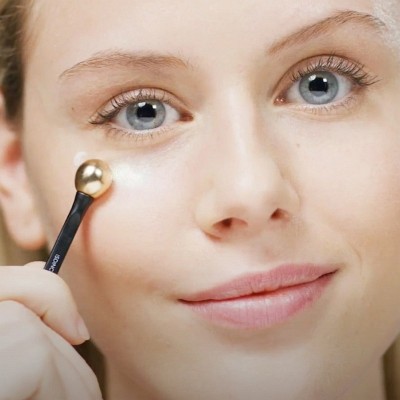 Massieren Sie die Augenpflege mit Hilfe des Applikators von innen nach außen ein, bis zum äußeren Augenwinkel.