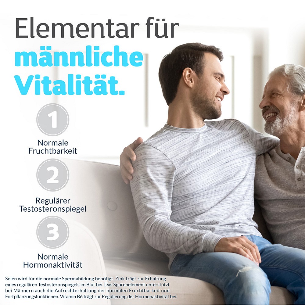 - Zink trägt zur Erhaltung des Testosteronspiegels bei, Selen unterstützt die Spermabildung
