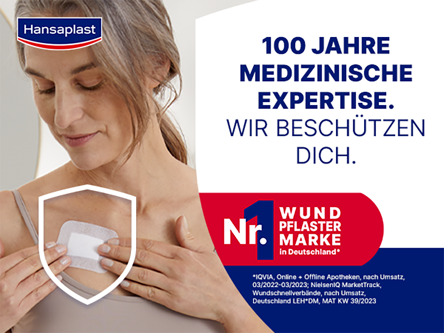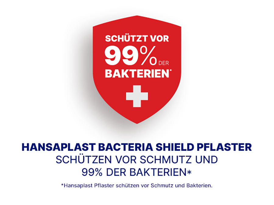 Wunde reinigen und sanft kleine Fremdkörper oder Verschmutzungen entfernen. Die Haut um die Wunde vorsichtig abtrocknen. Um eine ungestörte Heilung zu ermöglichen, sollte die Wunde mit einem geeigneten Pflaster oder sterilen Wundverband von Hansaplast geschützt werden.Wenn nicht anders vom Arzt empfohlen, sollte das Pflaster oder der sterile Wundverband täglich gewechselt werden.